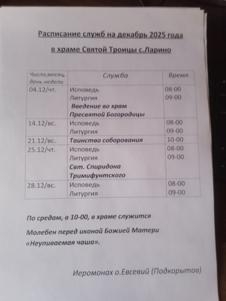 Расписание богослужений Расписание богослужений на декабрь 2025г. Просмотров (6205) Поделиться:TwitterВКонтактеОдноклассникиGoogle Оставить комментарий